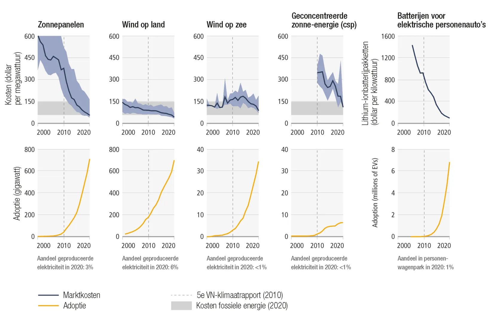 De kosten van verschillende uitstootarme technologieën, zoals die voor duurzame energie, zijn sinds 2010 tot 85 procent gedaald door onder meer innovatiebeleid en leereffecten. Ook hebben een stringenter mitigatiebeleid en nationale klimaatwetten geleid tot meer investeringen in CO2-arme technologieën en infrastructuur en is er veel private interesse voor bosherstel. Echter, er gaan nog altijd meer publieke en private investeringen naar fossiele brandstoffen dan naar mitigatie en adaptatie.