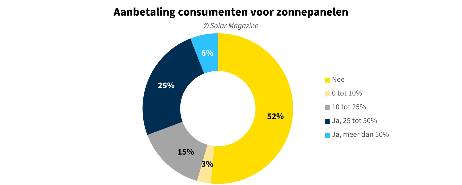 Opvallend genoeg vraagt meer dan de helft van de installateurs van zonnepanelen consumenten geen aanbetaling, zoals te zien is in onderstaande grafiek. Dit terwijl 30 procent van installatiebedrijven zelf wel een aanbetaling moet doen als zij materialen inkopen. Bovendien stelt 89 procent van de installateurs bij het inkopen van materialen btw te betalen.