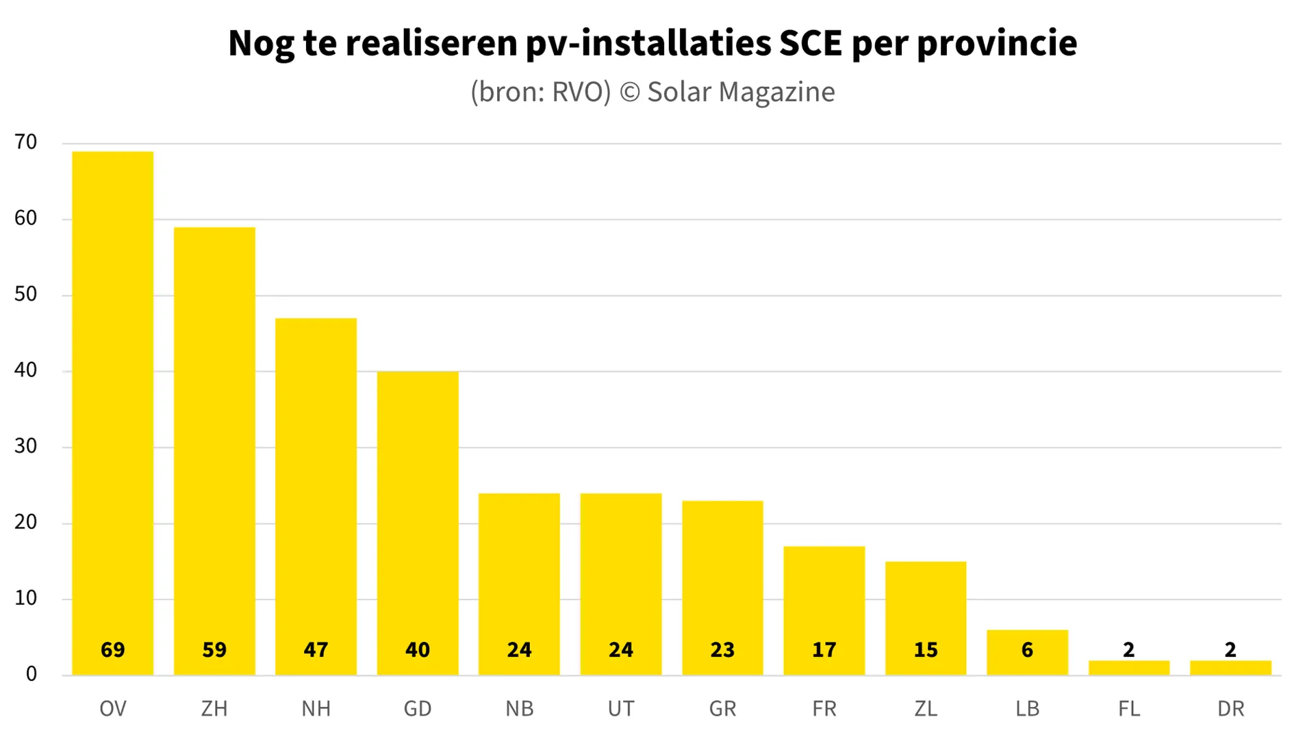 Ook wat betreft het aantal nog te realiseren projecten en het daarmee gemoeide volume is de provincie Overijssel de absolute koploper. De provincie heeft hier een nog grotere voorsprong op haar voornaamste achtervolgers; de provincies Gelderland en Zuid-Holland die de top 3 completeren.