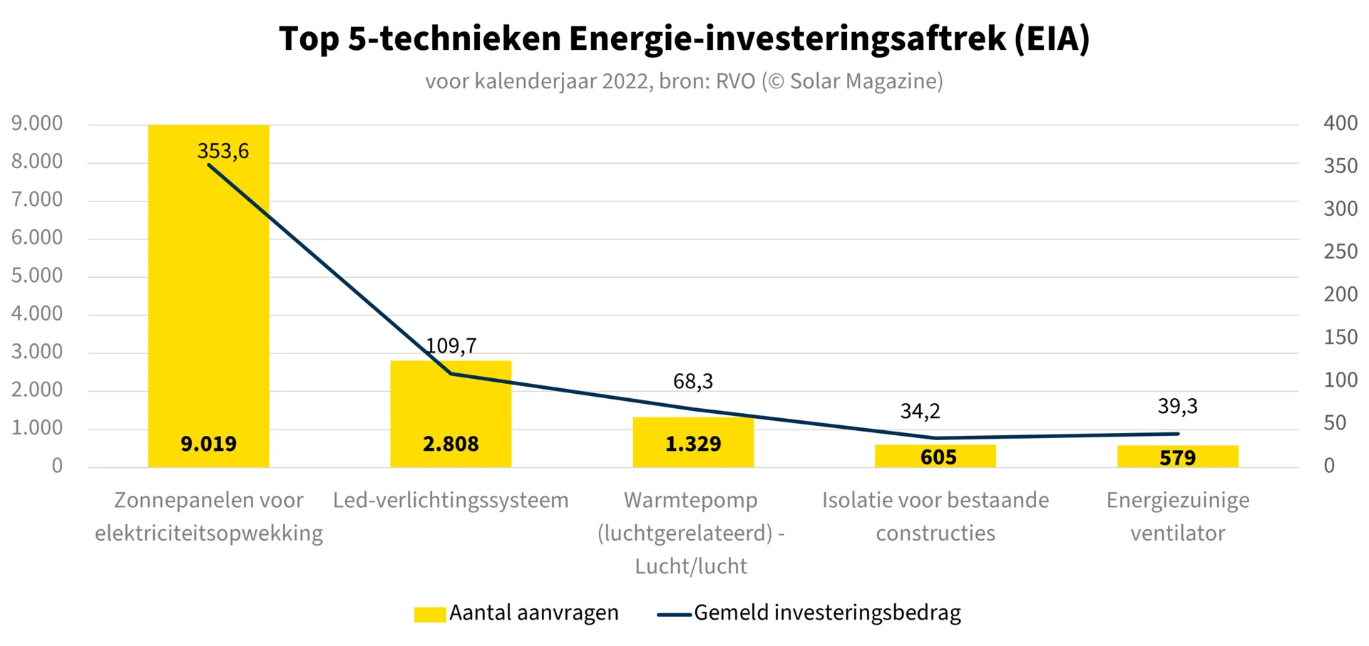 Nederlandse bedrijven hebben in 2022 samen voor ruim 3,5 miljard euro aan investeringen in energiezuinige maatregelen gemeld; een groei van 61 procent. De EIA leverde volgens de Rijksdienst voor Ondernemend Nederland (RVO) naar verwachting een voordeel van 309 miljoen euro op (red. er was 149 miljoen euro budget) voor Nederlandse bedrijven die investeerden in energiebesparende technieken. De energie-investeringen realiseren een energiebesparing vergelijkbaar met het jaarlijkse gasverbruik van 539.000 huishoudens.