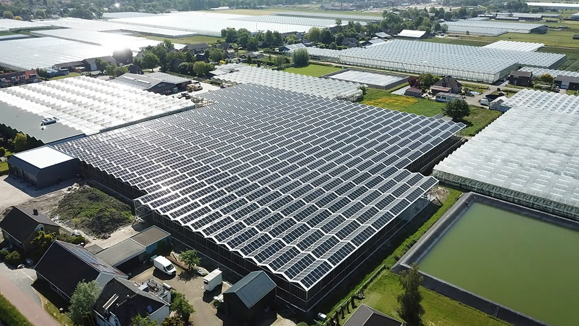 ‘Kassen hebben bijgebouwen waar bijvoorbeeld producten worden opgeslagen, verpakt, of de irrigatie- en klimaatinstallaties staan. Die zijn doorgaans groot; hebben een flink dakoppervlak waarop behoorlijk wat zonnestroom kan worden opgewekt. Die stap hebben veel van onze klanten al gezet. Daarnaast zien we ook steeds meer drijvende zonnepanelen op waterreservoirs, met als bijkomend voordeel het tegengaan van algengroei.’